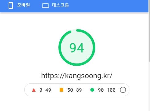 설정 후에는 모바일 속도가 94, 데스크톱 속도가 99로 모바일 속도가 굉장히 많이 올랐습니다. 사실 설정전에 속도가 60대도 나왔었기 때문에 20~30정도 올랐다고 보시면 될거 같습니다. 저에게는 제가 소개해드릴 방법이 최적의 방법이었지만 여러분에게는 아닐 수 있어서 일단 제가 소개해드리는 방법을 실행해보시고 안되면 최적의 방법을 찾는 방법도 알려드릴테니 그것도 꼭 해보시기 바랍니다.