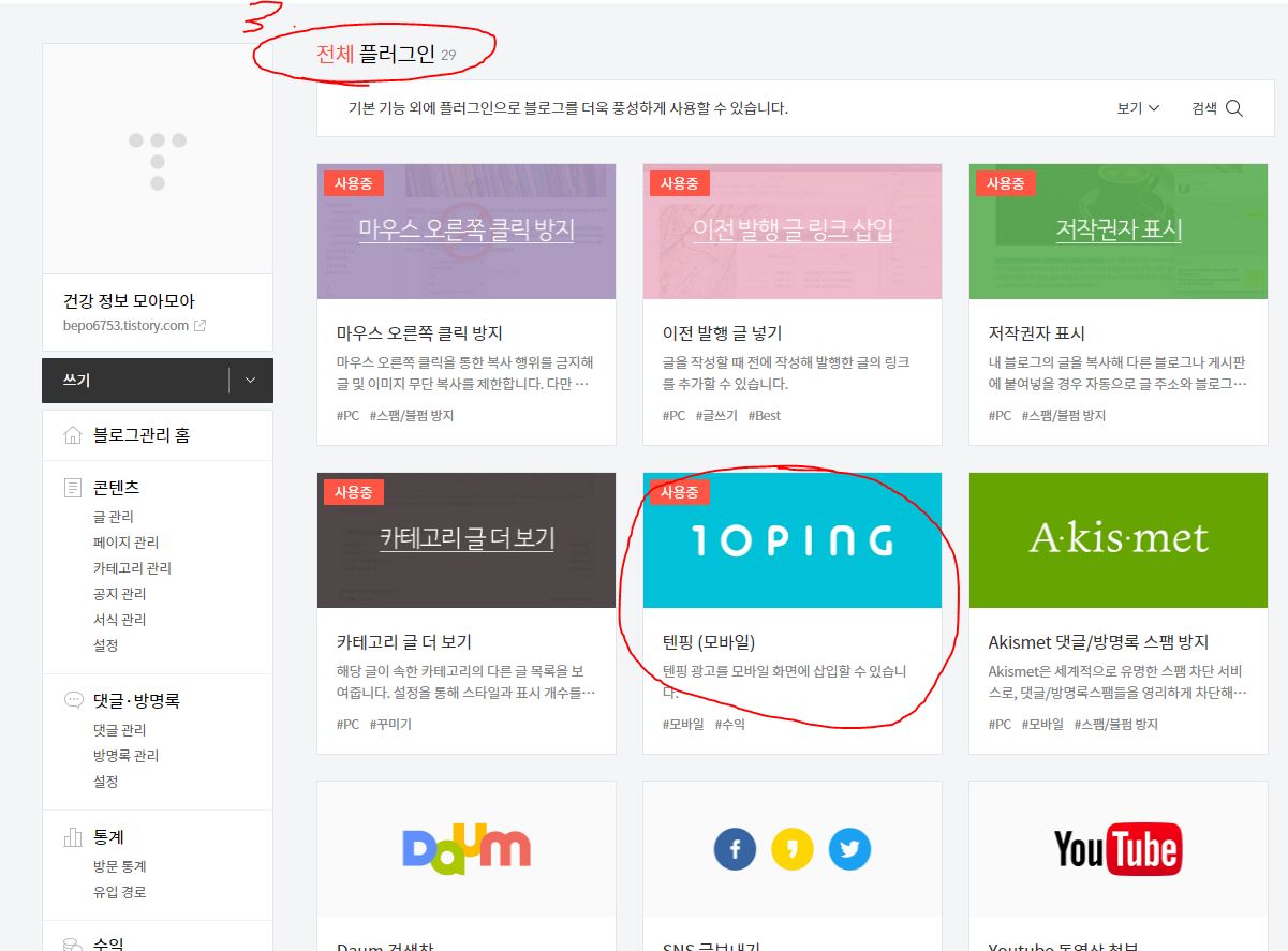 3. 텐핑 플러그인 클릭